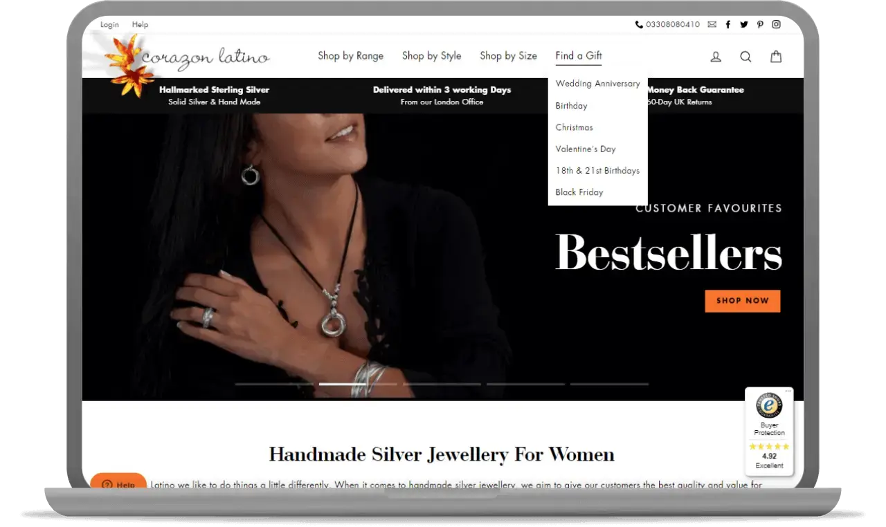 In the example below, Corazon Latino has set up a few different gift guides based on different events in a woman's life. They can be found directly in the navigation: