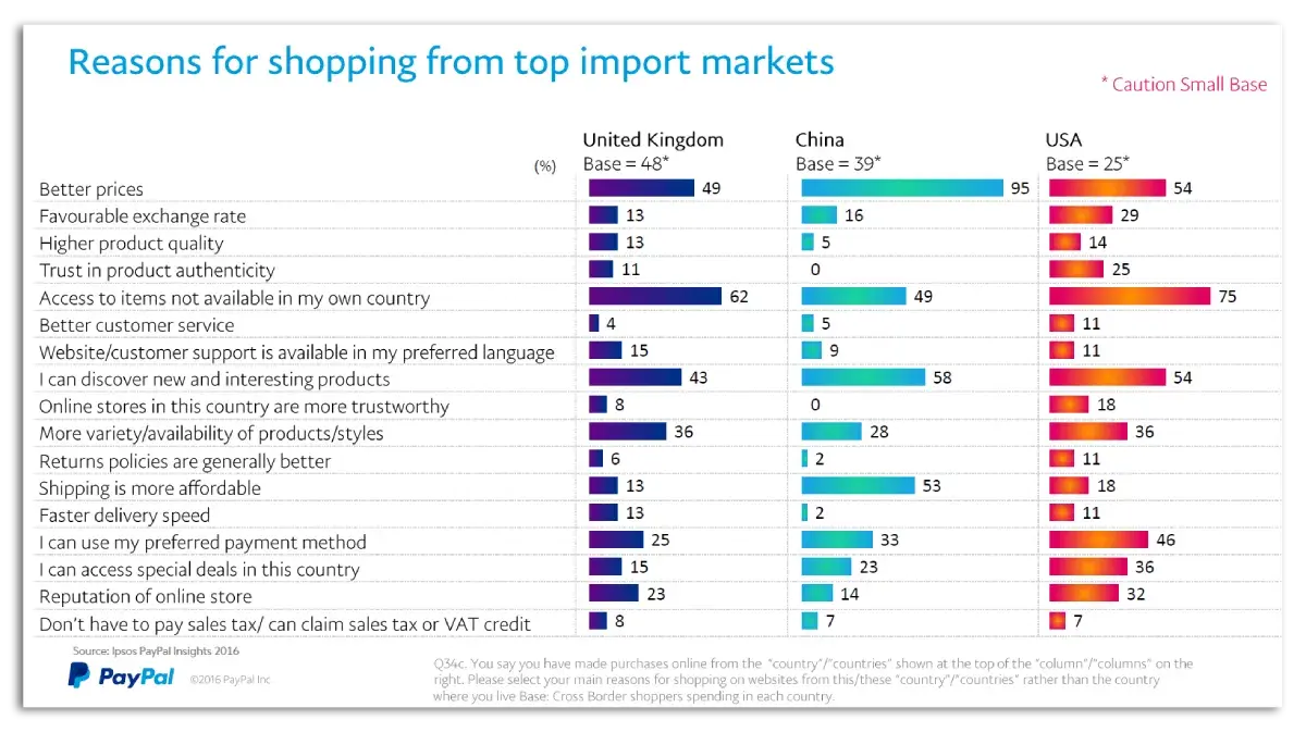 Though it is worth noting that the sample sizes were small here, it’s still interesting to see why German shoppers shop at UK shops. The top reasons here are basically price, availability, variety, discovery, preferred payments, and reputation.