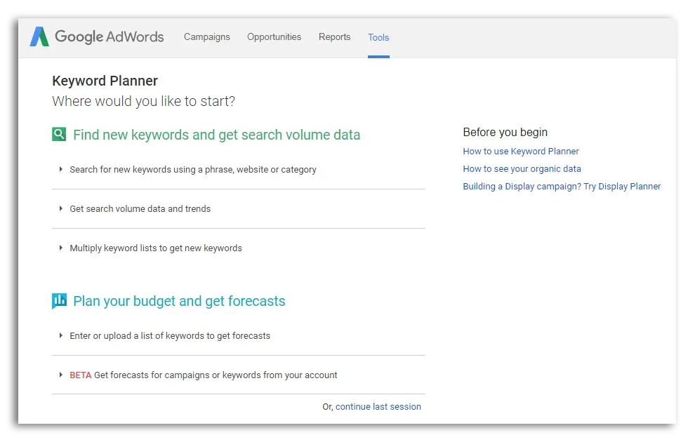 Let’s start with Google’s Keyword Planner. If you have a Google Ads account, you’re probably already used to this tool.