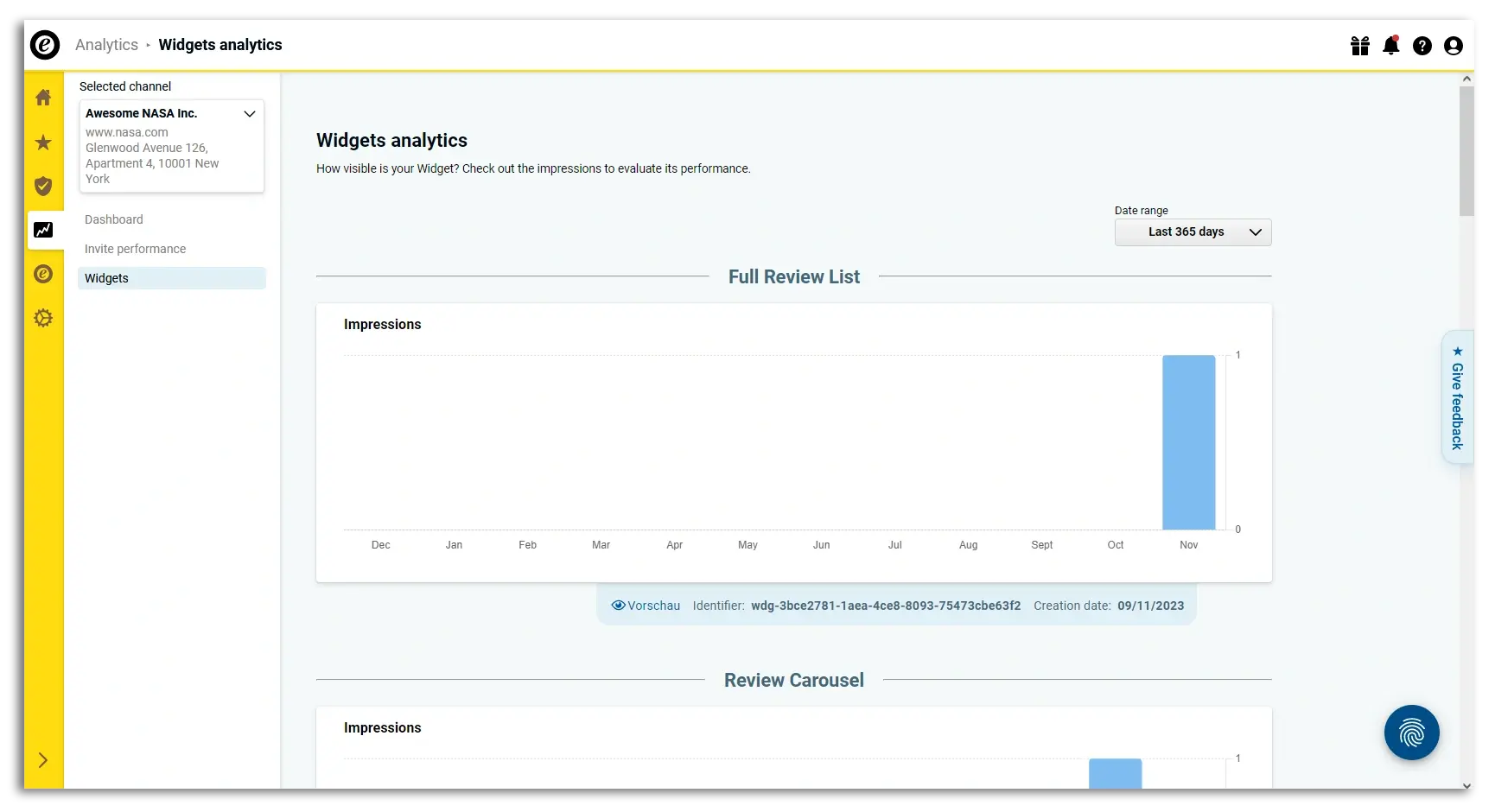 With the dashboard, you can see how those widgets have been performing over the past 7, 30, or 365 days.